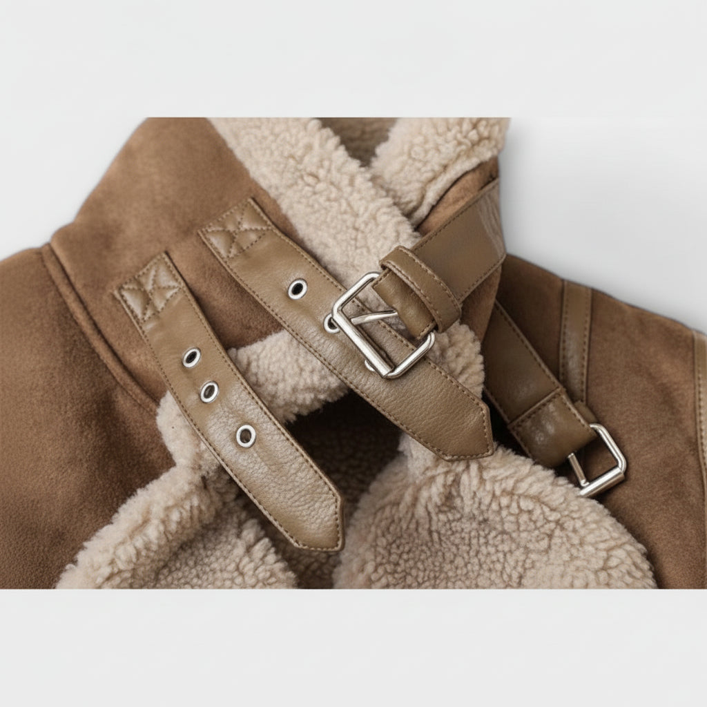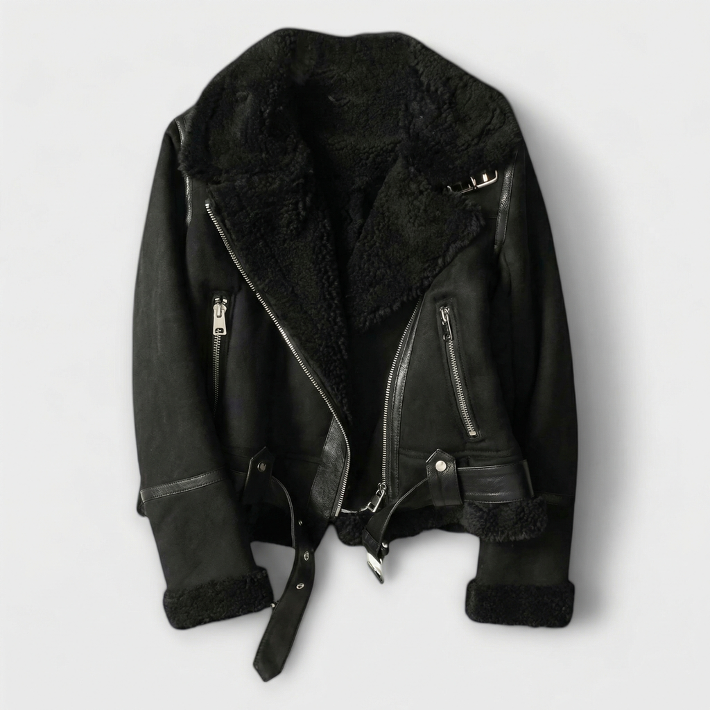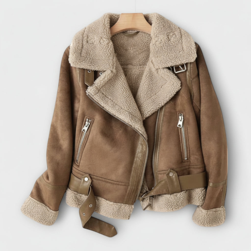 Este casaco de estilo aviador combina o melhor do conforto e da moda.